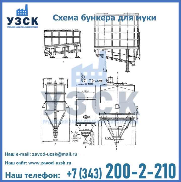 Завод «УЗСК» в Назрани проектирует, производит и поставляет целевое оборудование, в том числе, бункеры для хранения муки и прочих сыпучих материалов.