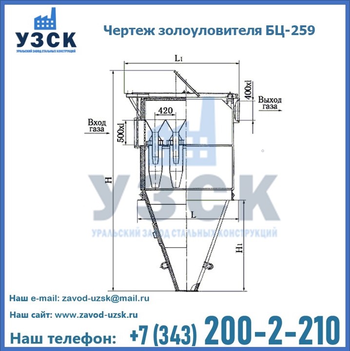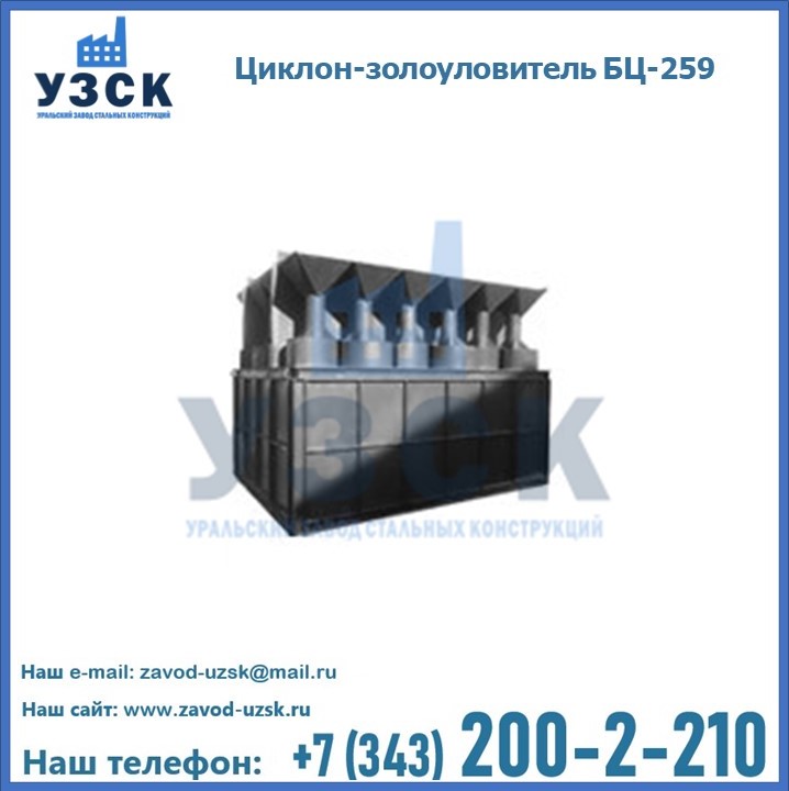 Если вы планируете купить то или иное оборудование, например, циклоны-золоуловители БЦ-259, то рекомендуем заказать данный товар на сайте УЗСК. Мы производим и реализуем продукцию высокого качества по приемлемой цене. Эксперты Уральского Завода Стальных Конструкций в Назрани проконсультируют вас по всем вопросам, помогут сделать выбор и оформить заказ без лишних временных затрат. Мы гарантируем соответствие нашей продукции всем требованиям ГОСТ и ТУ, а также износостойкость и высокую производительность предлагаемого оборудования. Если требуется изготовить циклон нестандартных размеров, то такой вариант выполнения заказа тоже предусмотрен, так как предприятие имеет собственные производственные площади и надежных поставщиков. На все поставляемое или производимое оборудование имеются чертежи и прочая техническая документация. Заказать и купить циклоны или прочее оборудование высокого качества и по доступной цене можно через наш сайт или по указанному в разделе «Контакты» телефону.