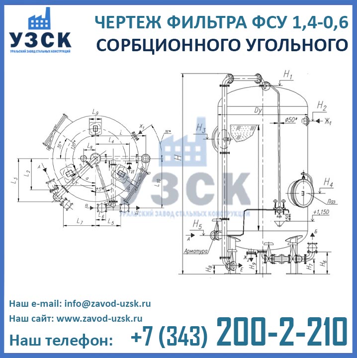 Если вы ищете фильтры ФСУ-1,4-0,6 в Назрани от изготовителя, то Вы на правильном пути! Уральский завод стальных конструкций – непосредственный производитель сорбционных фильтров ФСУ, предлагающий самые выгодные цены на ФСУ-1.4-0.6 в Назрани. По окончании процесса производства угольные фильтры проходят гидравлические испытания пробным давлением 0,9 МПа на аттестованном гидростенде, находящимся в собственности завода УЗСК. Мы гарантируем высокое качество выпускаемой продукции, и в этом уже убедились ведущие предприятия промышленного сектора России и стран ЕАЭС (см. раздел «Наши клиенты»).
