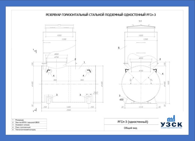 - РГСДп-3: горизонтальный резервуар двустенный подземного расположения.